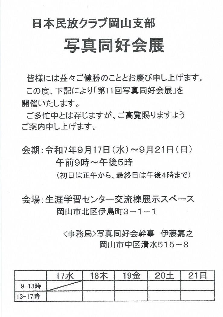 民ク岡山支部・第11回写真同好会展が終了致しました。 ご来場ありがとうございました。