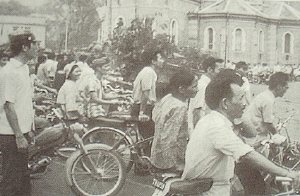 祝賀の日、「独立と自由より貴いものはない」という故ホー・チ・ミン首席の言葉、長いベトナム戦争のシンボルとなったスローガンが文字通り街中を埋め尽くした。夜に入って川岸に出ると、祝賀の花火と警戒のための照明弾の曳光が交錯していた。私は2年前のパリ協定停戦施行の日、同じ場所に立って、闇を払う照明弾だけの光の帯を見ていたことを思い出さずにはいられなかった。ハノイでは盛大な花火で祝っていたというのに。